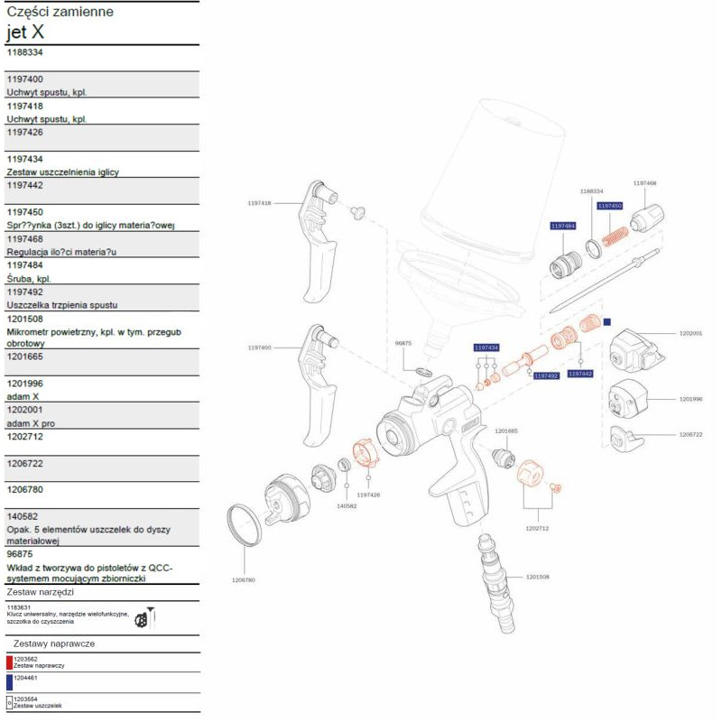 ZESTAW NAPRAWCZY DO PISTOLETÓW SERII F160 Z KUBKIEM GRAWITACYJNYM
