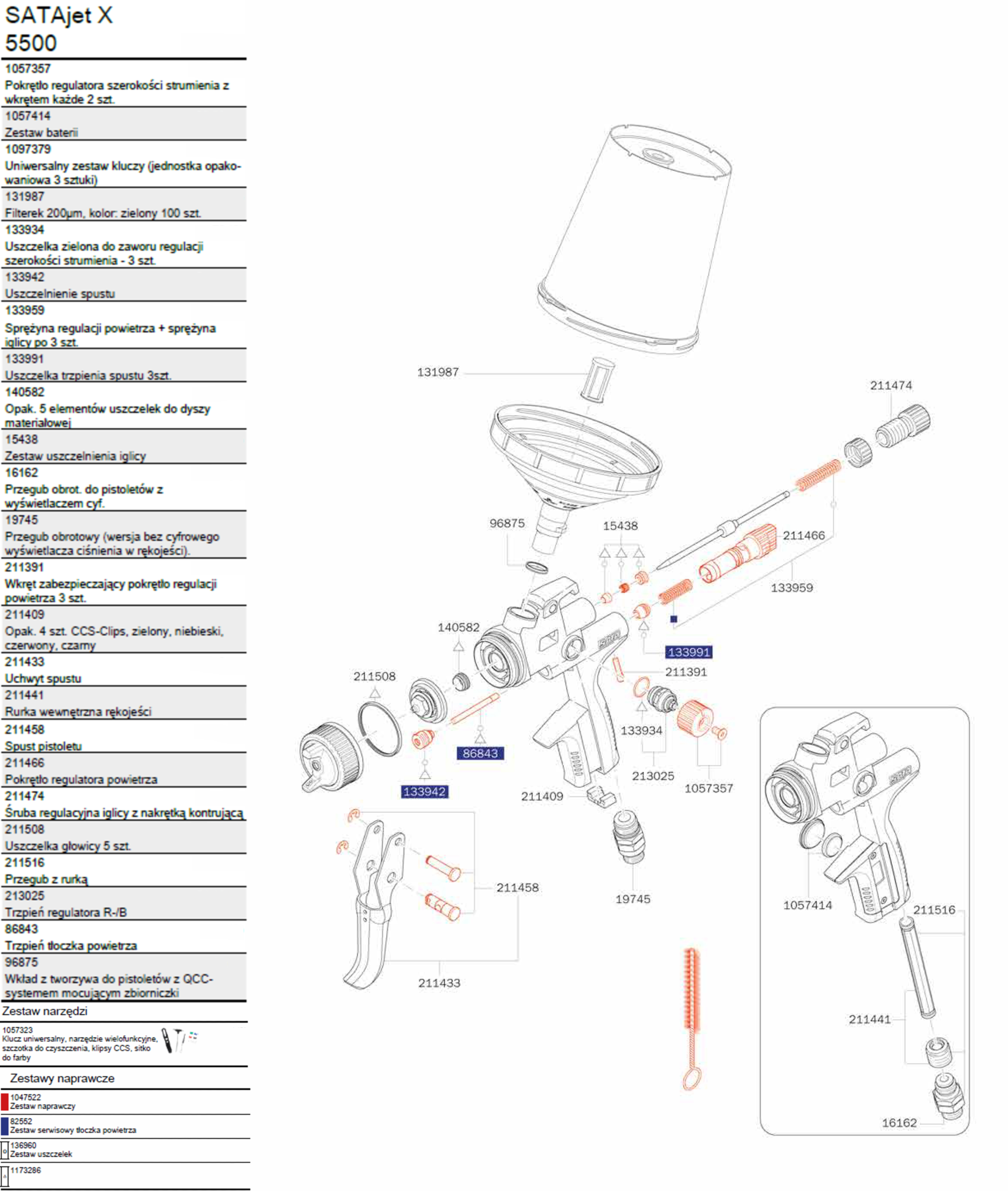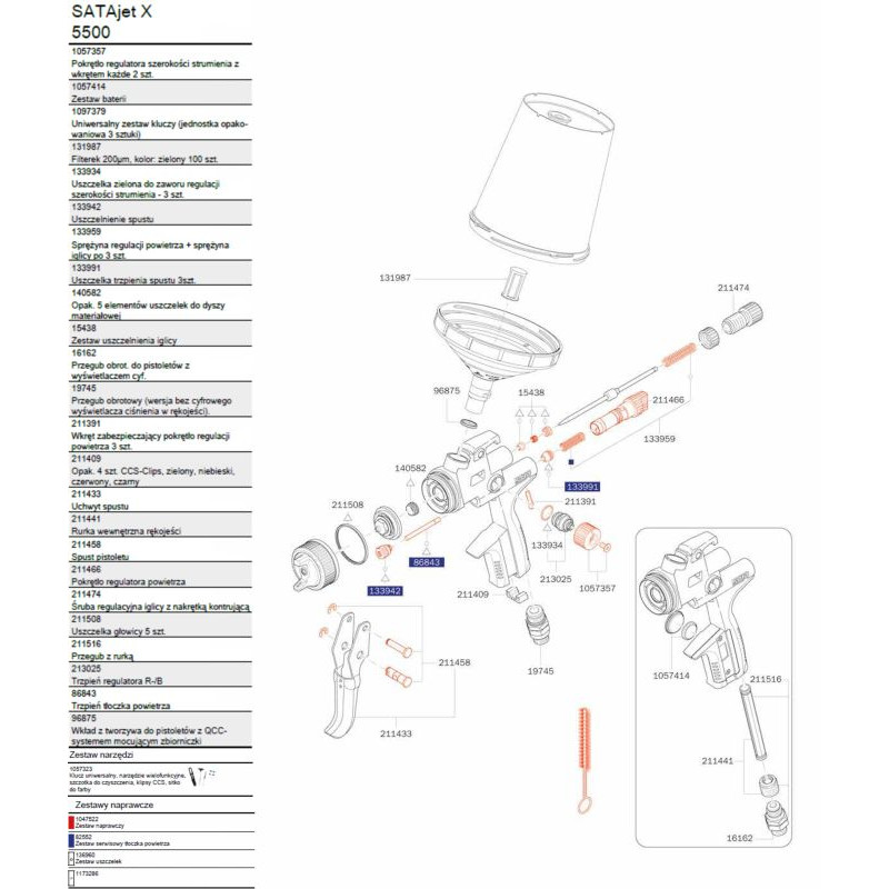ZESTAW NAPRAWCZY DO PISTOLETÓW SERII F160 Z KUBKIEM GRAWITACYJNYM