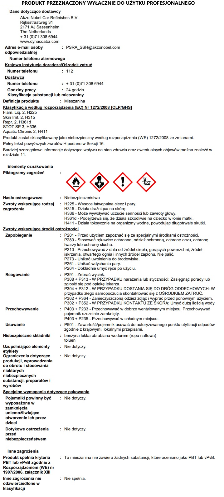 Karta charakterystyki - SDS żywica