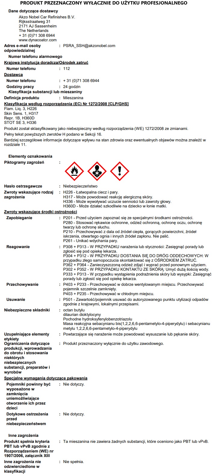 DYNACOAT CLEAR 5000 HS lakier bezbarwny o bardzo dobrej rozlewności i znakomitym wyglądzie. Produkt łatwo się poleruje jak i aplikuje. Lakier można zmieszać z wieloma utwardzaczami dopasowując do rodzaju naprawy i warunków otoczenia.
