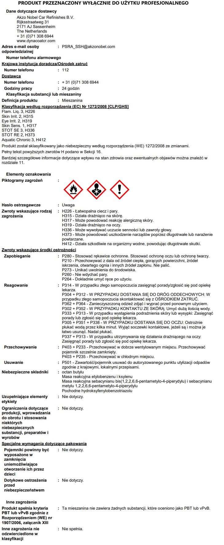 DYNACOAT CLEAR 1500 jest to dwukomponentowy lakier bezbarwny o wysokiej jakości wykończeniu. Lakier ten wyróżnia znakomity stosunek jakości do ceny. Lakier stosuje się z różnymi utwardzaczami i rozcieńczalnikami dobierając pod kątem rodzaju naprawy oraz warunków zewnętrznych.