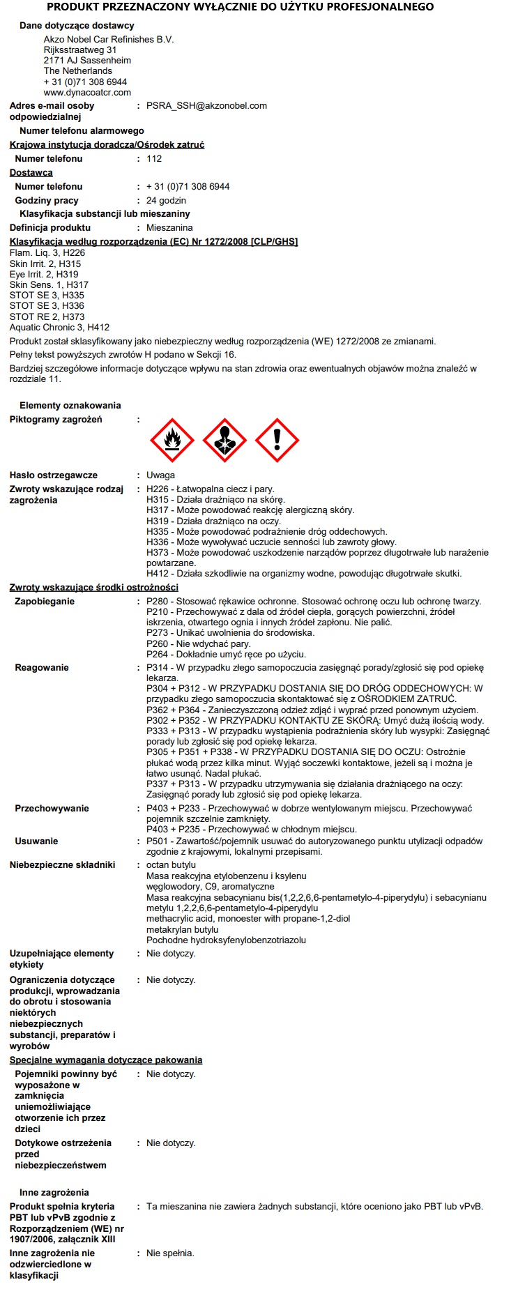 DYNACOAT CLEAR 5000 HS lakier bezbarwny o bardzo dobrej rozlewności i znakomitym wyglądzie. Produkt łatwo się poleruje jak i aplikuje. Lakier można zmieszać z wieloma utwardzaczami dopasowując do rodzaju naprawy i warunków otoczenia.