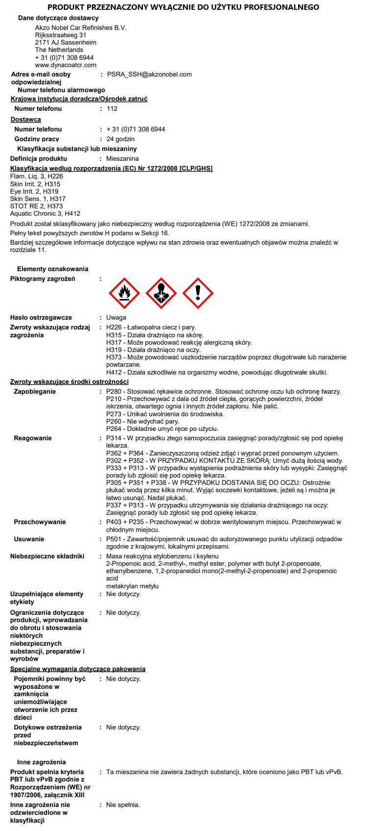 DYNACOAT HB 5+1 to dwukomponentowy, szybkoutwardzalny podkład wypełniający. Jego główną zaletą jest możliwość uzyskania grubej powłoki i bardzo dobre poddawanie się obróbce. Podkład występuje w trzech kolorach szarym, czarnym oraz białym.